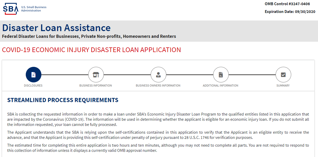 I spent much of the past week refreshing the SBA.gov website, looking for a streamlined form of some sort. Lo and behold, before I went to bed I noticed the EIDL form was online and VERY simple to fill out, at least for a sole proprietor.